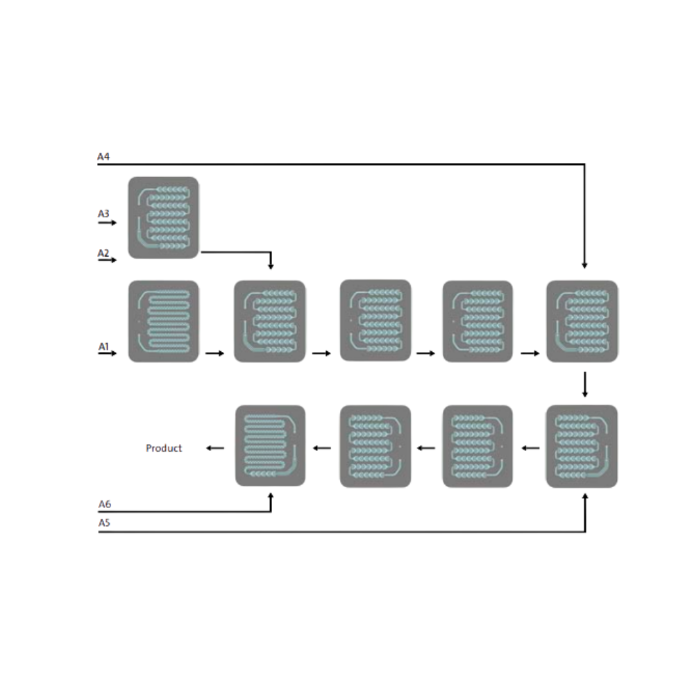 - Thể tích nội bộ nhỏ, giảm tiêu hao vật liệu phản ứng, cho phép phân bố thời gian phản ứng (residence time distribution) tối ưu hơn 50×, đồng thời thể tích phản ứng thấp hơn đến 1000× so với hệ batch.