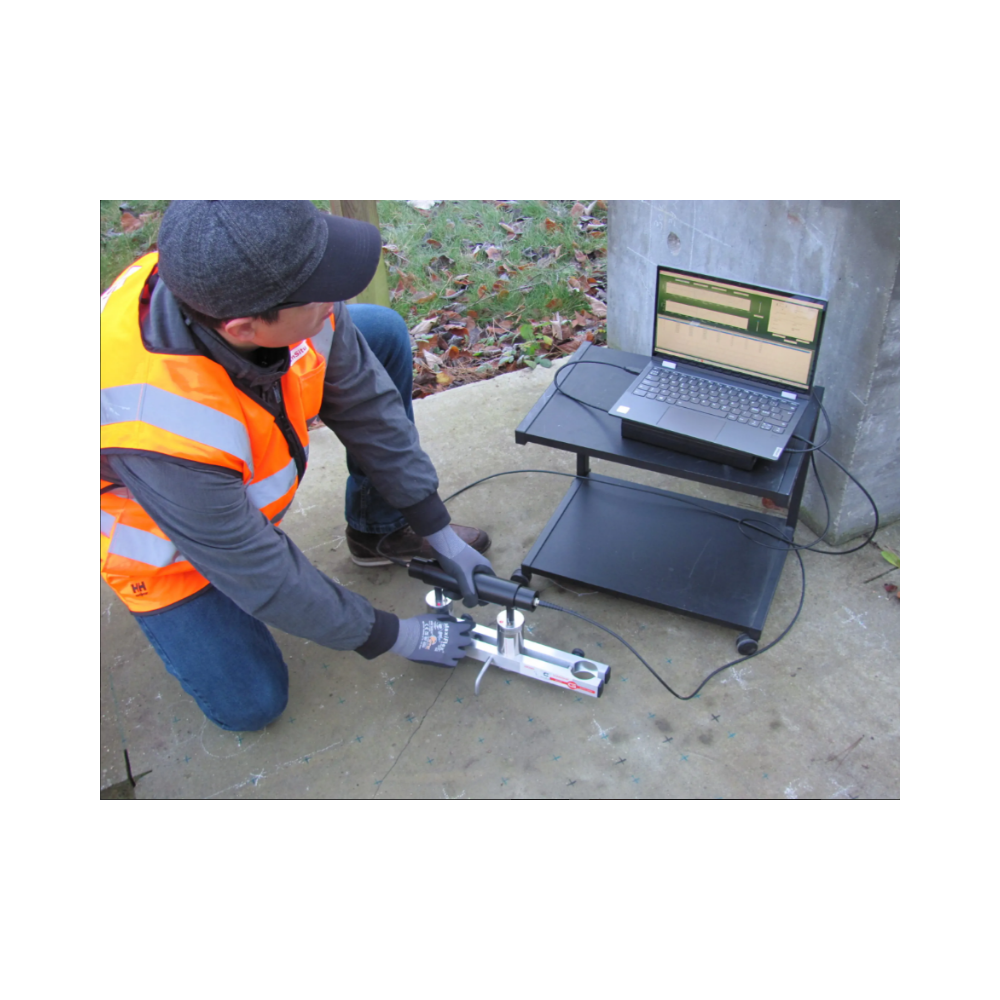 • s’MASH là hệ thống Impulse‑Response (IR) cầm tay và di động từ Germann Instruments – sử dụng búa mềm cảm biến lực để phát sóng uốn qua kết cấu bê tông, thu bằng cảm biến địa chấn (geophone), rồi phân tích phổ đáp ứng để xác định đặc trưng độ rung và khu vực có khuyết tật. Thiết bị tuân thủ tiêu chuẩn ASTM C1740 về kiểm tra tấm bê tông bằng phương pháp đáp ứng xung