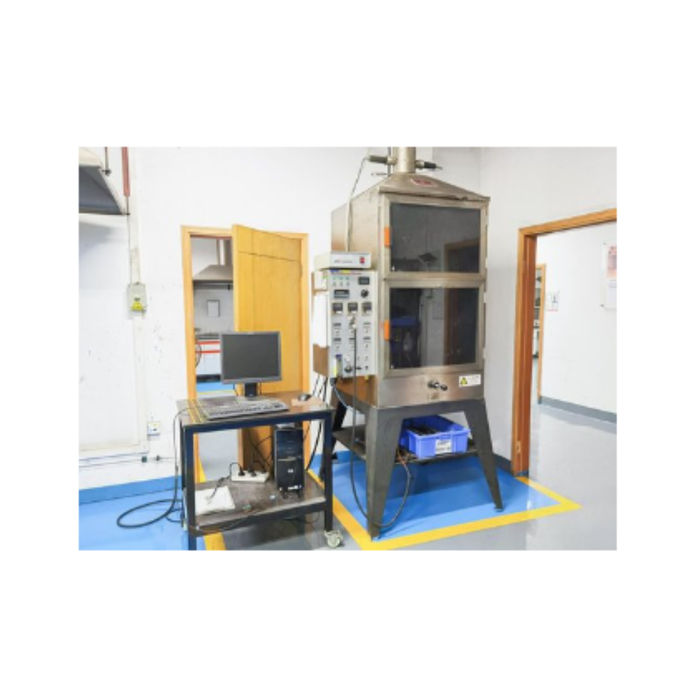 - Hệ thống đo khói: Tuân thủ tiêu chuẩn DIN 50055, sử dụng nguồn sáng đèn 2900K để đo lường mức độ phát triển khói trong quá trình cháy.