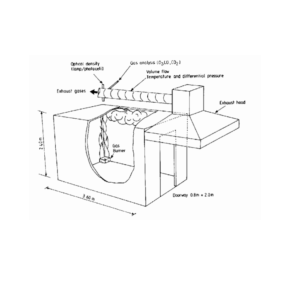 Thử nghiệm được thực hiện trong một phòng thử nghiệm có kích thước tiêu chuẩn (2,4m x 2,4m x 2,4m), với một cửa ra vào mở duy nhất. Vật liệu cần kiểm tra được lắp đặt trên tường và trần theo cấu hình xác định. Nguồn đánh lửa (thường là đầu đốt propane) được đặt ở góc phòng và kích hoạt trong khoảng thời gian xác định để quan sát phản ứng của vật liệu. Các thông số như nhiệt độ, tốc độ lan truyền lửa, và lượng khói được ghi nhận và phân tích.