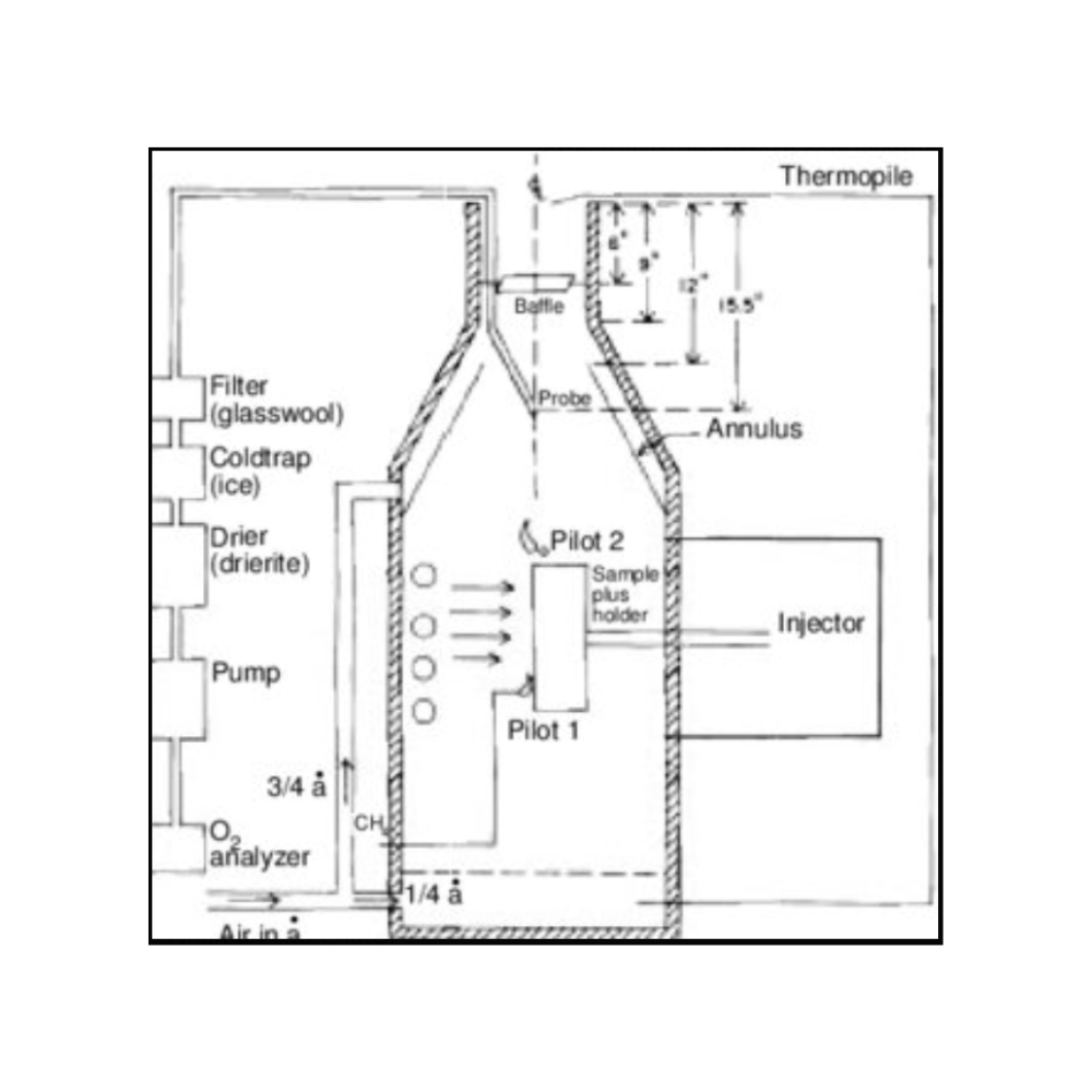 - Nhiệt điện để đo tốc độ giải phóng nhiệt, năm mối nối cặp nhiệt điện nóng trong ống khói và năm mối nối lạnh trong buồng khí.
