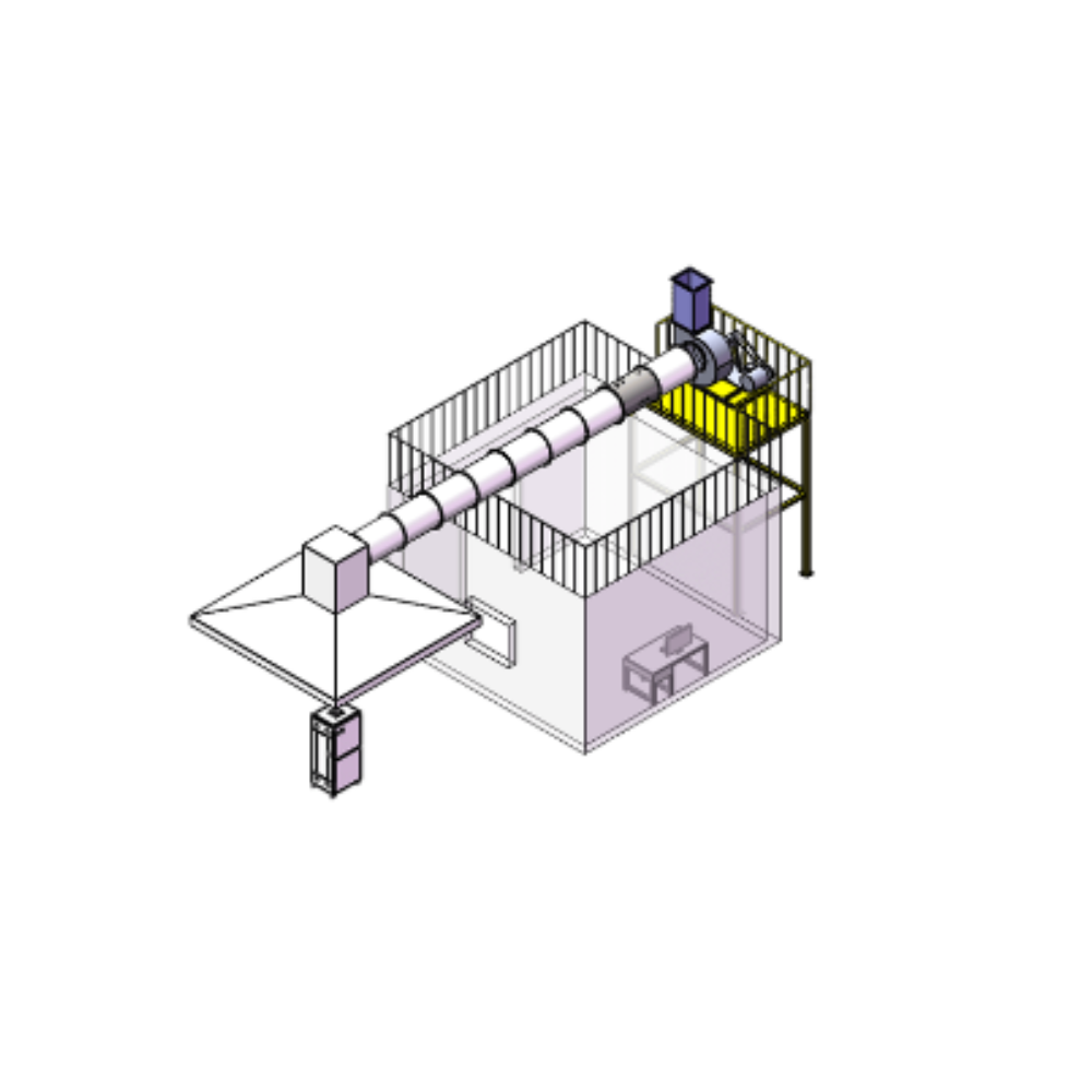 - Ống hút và ống dẫn được kết nối với hệ thống xả có công suất không dưới 60.000 m3/h.