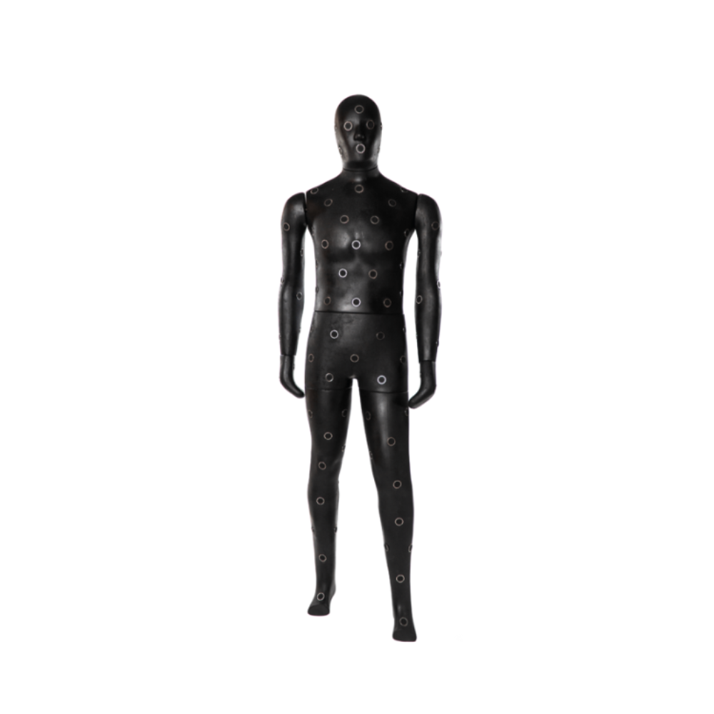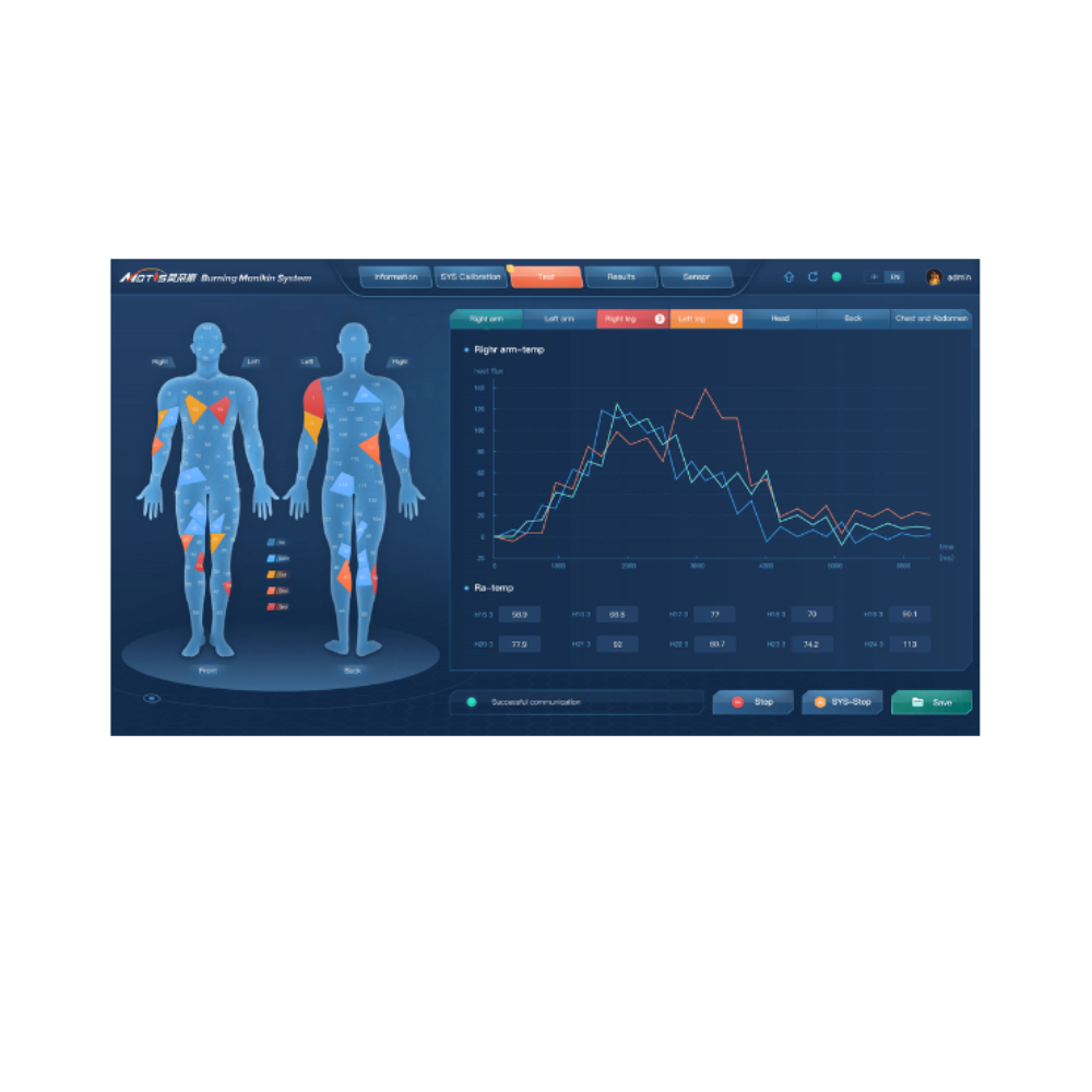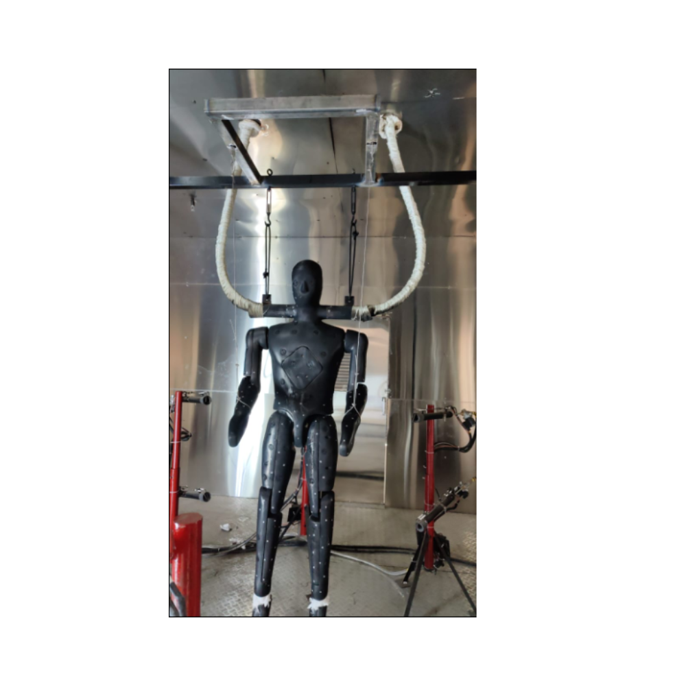 - Các ống kim loại chịu nhiệt độ cao được tích hợp vào cổ ma-nơ-canh để hỗ trợ, với các dây cáp cảm biến kết nối với các cảm biến nhiệt bề mặt.
