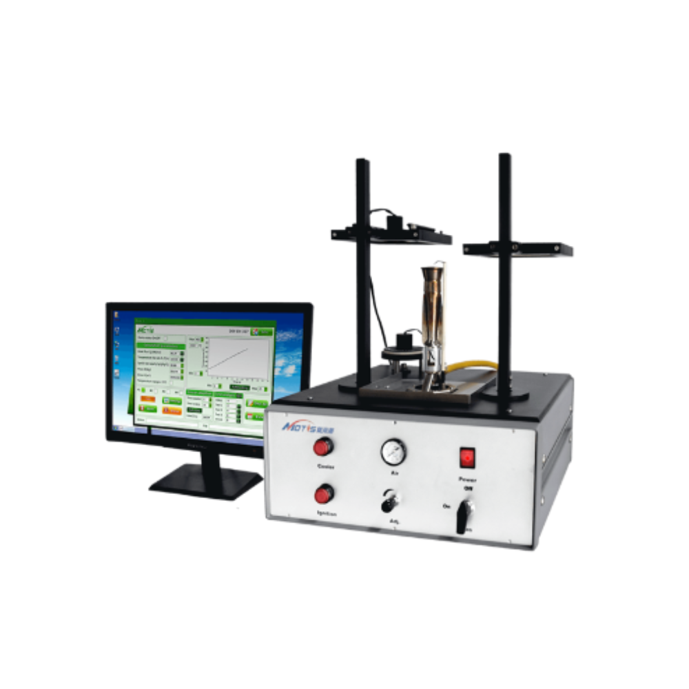- Máy kiểm tra chỉ số truyền nhiệt bao gồm đầu đốt khí Meker, một nhiệt lượng kế đĩa đồng, một khung đỡ mẫu tự động xoay, một hệ thống ghi nhiệt độ và thời gian, và phần mềm chạy trên Windows.