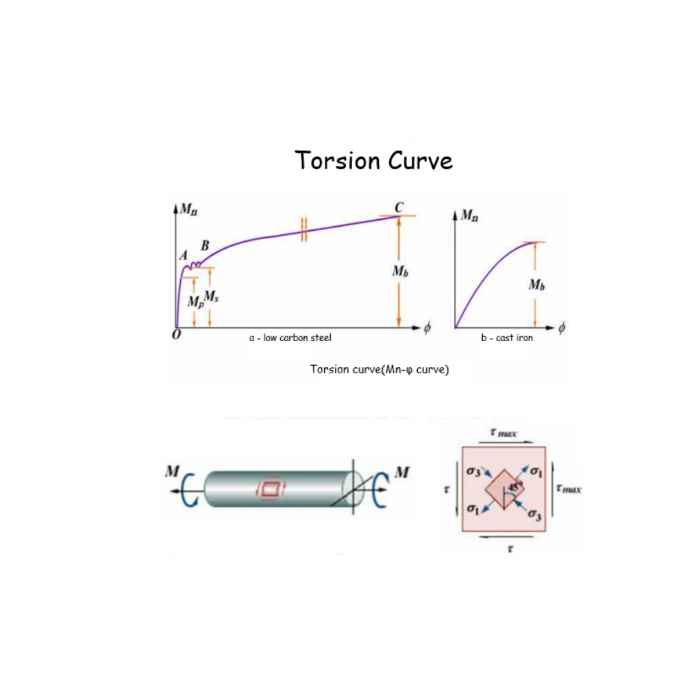 - Thông số đàn hồi: Mô đun cắt phản ánh khả năng chống lại biến dạng xoắn đàn hồi của vật liệu, được tính toán thông qua đoạn tuyến tính ban đầu của đường cong mô men xoắn - góc xoắn.