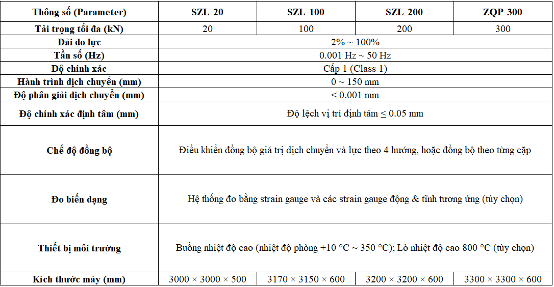 - Servo thủy lực chính xác cao: Tạo tải lặp liên tục theo từng phương với khả năng điều chỉnh biên độ chính xác.