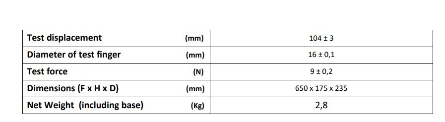 • This device is supplied with all the necessary accessories to perform the test: Temperature probe, steel ball and sand.