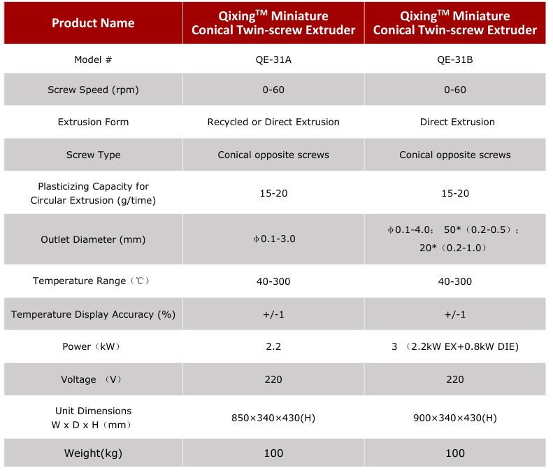 Máy đùn trục vít đôi hình nón mini QixingTM được ứng dụng rộng rãi trong: