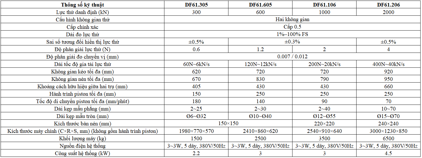 - Hệ thống thủy lực servo + phần mềm hiện đại cho phép kiểm soát lực với sai số rất thấp.
