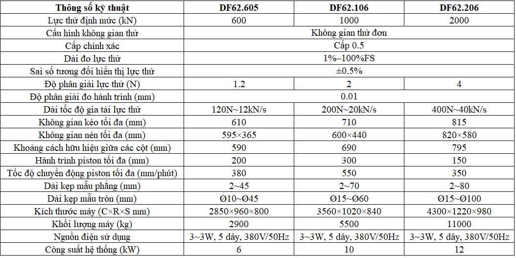 - Hệ thống thủy lực servo giúp kiểm soát lực thử rất chính xác, ít bị ảnh hưởng khi thử trong dải lực rộng.