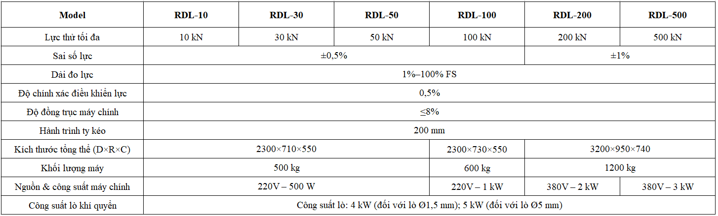 - Đo hiện tượng rão, đứt do ứng suất, rão kèm đứt, rão kèm mỏi, rão kéo