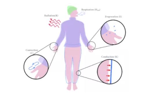 - Khi nhiệt độ bên ngoài cao hoặc cơ thể con người tham gia vào các hoạt động gắng sức, quần áo bọc trên bề mặt cơ thể con người sẽ bị làm ẩm bởi một lượng lớn mồ hôi. Trong những năm gần đây, với việc nghiên cứu sâu hơn về phát triển hàng dệt may chức năng, nghiên cứu về sự thoải mái về nhiệt và ẩm ướt của vải ở trạng thái này đã thu hút ngày càng nhiều sự chú ý của các nhà nghiên cứu. Sự cân bằng giữa sinh nhiệt và tản nhiệt trong cơ thể con người là điều kiện cần thiết để duy trì sự sống. Sự sinh nhiệt phụ thuộc vào quá trình biến đổi sinh lý trong cơ thể, còn sự toả nhiệt được thực hiện theo 4 con đường: đối lưu, dẫn nhiệt, bức xạ và bay hơi. Tản nhiệt liên quan đến các điều kiện môi trường xung quanh, hiệu suất và trạng thái của vải quần áo,