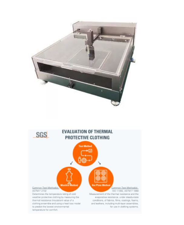 - Tấm giữ nhiệt có lớp bảo vệ mồ hôi bao gồm bảng thử nghiệm mô phỏng da người, hệ thống cấp nước tự động, hệ thống ổn định tốc độ gió, máy chủ thử nghiệm, v.v. Nó cũng cần được trang bị buồng môi trường, vì bảng thử nghiệm được đặt trong buồng môi trường cho toàn bộ phép thử để đáp ứng các điều kiện nhiệt độ và độ ẩm cần thiết cho phép thử.