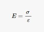- Đối với hầu hết các vật liệu, phần ban đầu của phép thử sẽ thể hiện mối quan hệ tuyến tính giữa lực hoặc tải trọng tác dụng và độ giãn dài mà mẫu vật thể hiện. Trong vùng tuyến tính này, đường thẳng tuân theo mối quan hệ được định nghĩa là Định luật Hooke, trong đó tỷ lệ giữa ứng suất và biến dạng là một hằng số. E là độ dốc của đường trong vùng này ứng suất (σ) tỷ lệ với biến dạng (ε) và được gọi là mô đun đàn hồi hay mô đun trẻ :