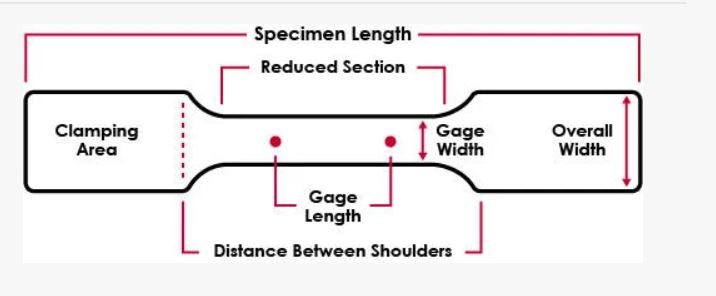 - Các mẫu thử kéo thường được gia công hoặc đúc khuôn theo hình xương chó, cung cấp 'vai' được thiết kế để giữ bằng tay cầm của máy thử và 'chiều dài thước đo' để đo các đặc tính kéo. Kích thước của các vai này, chiều dài thước đo giữa chúng, chiều dài và chiều rộng của toàn bộ mẫu đều được quy định bởi tiêu chuẩn thử nghiệm.
